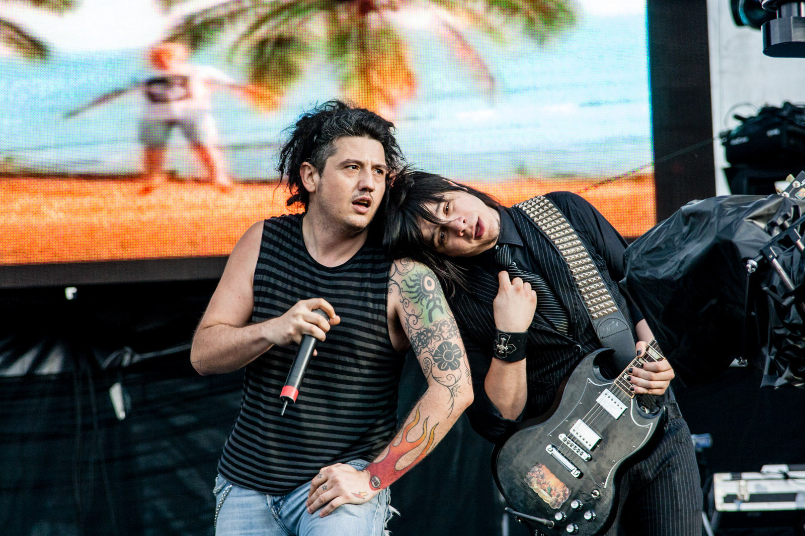 Tem guitarra, bateria, computador saindo som